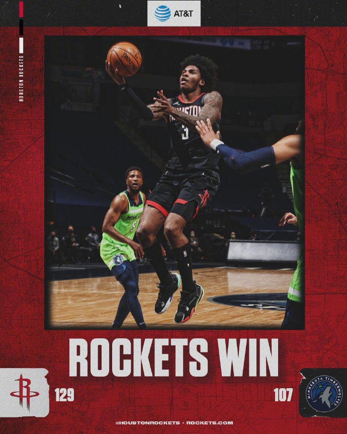 直播车3月28日讯 NBA常规赛森林狼主场对阵火箭,刚开场火箭依靠小波特和奥利尼克联手拿分,森林狼则外线不断命中三分,不过火箭再在第一节后半段打出攻势建立领先。第二节上来小波特仍旧状态火热频频砍分,森林狼进攻状态低迷,火箭趁势继续拉大分差,斯特林-布朗连续命中4个三分,上半场火箭74-48大比分领先。下半场回来火箭仍旧保持不错的手感,虽然森林狼略为缩小分差,但第四节火箭再次打出攻势拉开比分,比赛完全失去悬念,最终火箭129-107大胜森林狼。