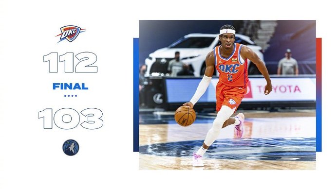 雷霆(19-24):亚历山大31分4助攻3篮板2盖帽、杰罗姆15分6助攻4篮板、波库舍夫斯基13分10篮板4盖帽2助攻、肯里奇-威廉姆斯12分4篮板3助攻、米哈伊柳克10分3助攻2抢断、马勒登9分5助攻4篮板、罗比9分4篮板、贾斯丁-杰克逊9分4助攻、摩西-布朗4分17篮板3盖帽。