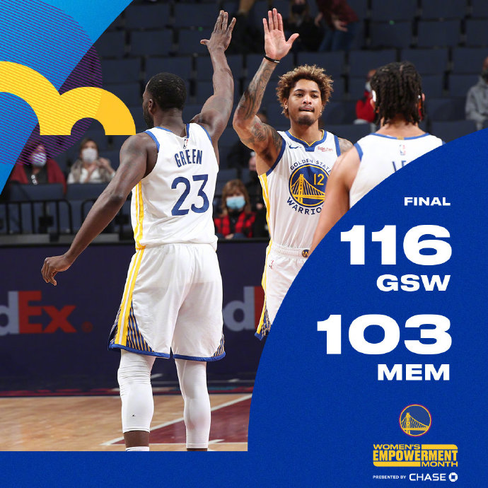 直播车3月20日讯 NBA常规赛,灰熊主场迎来勇士的挑战,前者上一场依靠莫兰特最后的准绝杀险胜热火目前排名西部第10位,后者上一场也是轻取火箭排在西部第9位,但库里因为尾椎骨受伤缺席本场比赛。开局阶段,没有库里的勇士进攻勉强与灰熊抗衡,凭借着维金斯末段的神勇发挥,勇士一波进攻高潮领先8分进入次节,次节灰熊还是没有找到手感,后半节勇士依靠维金斯和普尔火热的外线手感继续拉大比分,半场结束勇士领先19分。易边再战,灰熊连续失误,打不出自己的进攻节奏,勇士抓住机会内外开花将分差拉大,梅尔顿和温斯洛的三分帮助灰熊追回一些分差,勇士依然领先19分,末节灰熊在内线找到机会追回一些分差,勇士依然依靠积极性守住20分的优势,后半节成为练兵时间,最终勇士轻取灰熊。
