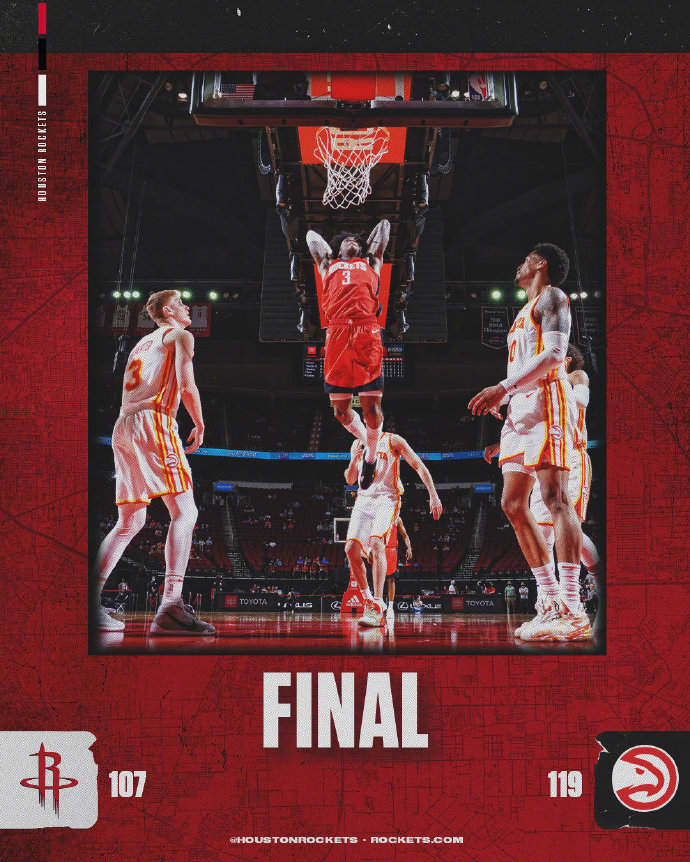 直播车3月17日讯 NBA常规赛火箭主场对阵老鹰,火箭近来已经创队史的遭遇16连败,反观老鹰近来状态不错取得5连胜。开场后虽然火箭首先进入状态,但特雷-杨和加里纳利先手找到手感帮助老鹰在首节便取得两位数优势,第二节老鹰外线手感火热一度将分差拉大到23分,但奥拉迪波和波特两人联手又为火箭咬住比分,上半场老鹰73-58领先火箭。下半场回来火箭在奥拉迪波的带领下掀起反扑,他们外线连中三分在三节结束时将比分追到只差1分。但第四节老鹰迅速调整重新建立领先,最终老鹰119-107送给火箭17连败。