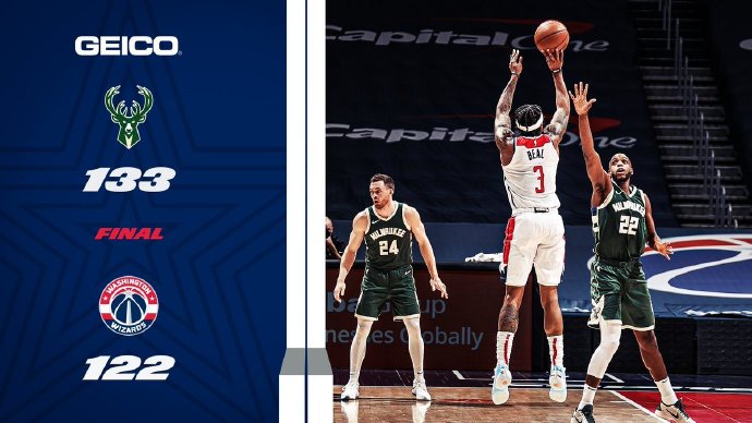 直播车3月16日讯 时隔两天,雄鹿和奇才迎来了他们的第二场较量,上一次交锋字母哥和威少互飙三双,最终还是雄鹿更胜一筹,此役比尔复出,奇才也是憋着一口气要复仇。首节雄鹿率先找到外线手感,迪文岑佐与霍勒迪用一波三分雨为球队确立了领先优势,次节波蒂斯与字母哥又联手送出10-2的攻击波将分差拉大到15分,奇才虽然能够在进攻端予以回应,无奈防守端太过拉胯,半场便让对手拿下将近70分。下半场雄鹿继续扩大战果,然而就在比赛快要被打花之际,雄鹿进攻突然断电,八村塁和比尔挺身而出一度将分差缩小到只有5分,可惜雄鹿很快便找回进攻感觉,奇才松散的防守让他们无法更进一步。最终,雄鹿133-122再次击败奇才豪取四连胜。