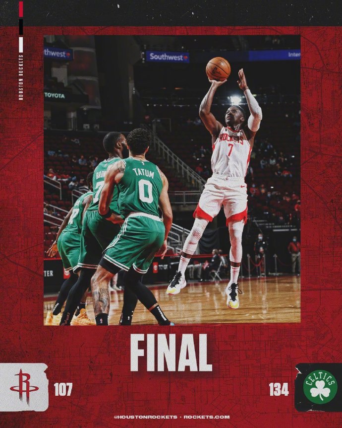 直播车3月15日讯 目前遭遇15连败的火箭坐镇主场迎战凯尔特人,沃尔和戈登本场因伤继续缺阵。上半场的争夺火箭仅仅打了半节时间的好球,他们在奥拉迪波的带领下首节最多拿到8分的领先,但绿军顶住火箭三板斧后迅速占据上风,首节后半段在奥杰莱连续两记三分带动下打出18-6的攻势反超比分,次节开局绿军延续手感又是一波7-0的进攻,而火箭在这一节前6分钟里仅泰特打入唯一的运动战进球,半场结束时绿军已经手握13分领先。第三节火箭仍然没有找回进攻手感,这一节他们仅得19分,而防守端则被绿军彻底打穿,绿军单节再胜19分并将领先拉大至32分早早锁定胜局。最终,凯尔特人客场大胜火箭,并送火箭16连败,16连败也创造了火箭队史连败最长纪录。