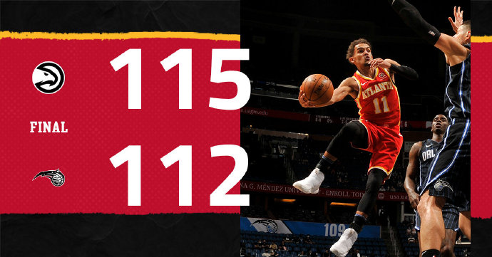 直播车3月4日讯 NBA常规赛,老鹰迎来了五连客的第四场比赛,奔赴奥兰多客场挑战魔术队,后者遭遇伤病潮近期状态不佳,正经历一波四连败,距离东部第八已经渐行渐远。前者则是刚刚换帅,上场比赛击败了近期状态出色的热火,终结了对手的六连胜,目前排名东部第十一,距离东部第八黄蜂1.5个胜场。本场比赛卡佩拉、富尼耶因伤缺战。首节比赛魔术进攻火力凶猛,三分11投6中单节轰下39分,老鹰则靠特雷杨单节10分咬住分差。次节老鹰由于失去了内线支柱攻防两端都有所受限,魔术则始终围绕武切维奇这个优势点打,最终以19分的优势结束上半场。异地再战,老鹰手感火热连续命中三分,一度将分差迫近到了5分,可魔术随即加强防守并抓住武切维奇这个优势点,再次将分差拉开,但节末隆指导连续助攻队友命中三分,以12分的分差进入第四节的决战。末节首段,老鹰打出流畅进攻再次将分差迫近到6分,虽然比分随即被魔术再次拉开,但节中老鹰疯狂下起三分雨再次将比分拉近,并在最后三分钟将分差追至3分。决战阶段,双方交替领先,最后18秒武切维奇补篮为魔术领先1分,可特雷杨随后造犯规罚球准绝杀,随着魔术最后一投中投不中,最终老鹰客场逆转魔术,送对手五连败。