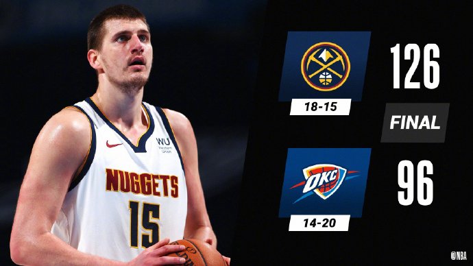 直播车2月28日讯 掘金今日前往俄城挑战雷霆,双方前两次交锋都以掘金的胜利告终,此役他们也是势在必得。首节比赛,雷霆攻防两端全部掉链子,掘金上来就反客为主奉上13-0的攻击波,波特单节三分4中4砍下14分,在他和约基奇的带领下掘金全队火力全开,很快便确立了18分的领先优势。次节雷霆利用对手主力下场的间隙,靠着杰罗姆、K-威廉姆斯等人的努力一度将分差迫近到11分,但当掘金主力重回场上后,局势再次失控,掘金送出18-5的攻势将分差拉大到22分。第三节雷霆外线依旧失准,防守端霍福德又被约基奇完全压制,约老师两节半即砍下三双,掘金多点开花一举确立了30分的领先优势。末节因为分差过大,两队早早撤下主力开始练兵,比赛彻底失去悬念,最终掘金客场126-96击败雷霆。