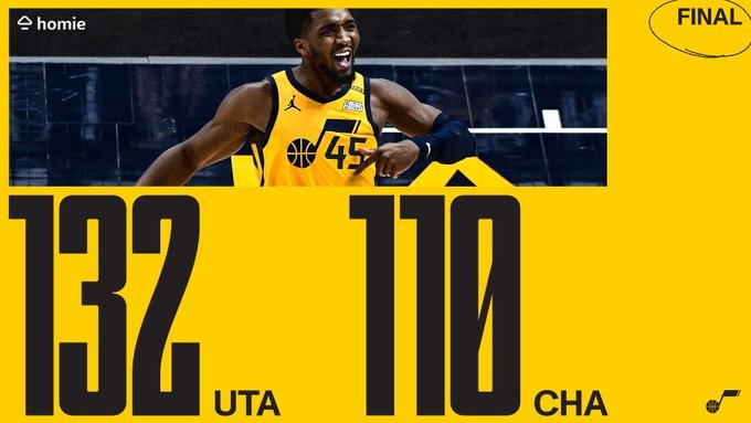 爵士(25-6):米切尔23分8助攻4篮板、英格尔斯21分6助攻5篮板、尼昂21分3篮板、克拉克森20分4助攻2篮板2抢断、康利15分5助攻3抢断2篮板、博格达诺维奇10分4篮板2助攻、戈贝尔10分11篮板6盖帽、奥尼尔8分8篮板5助攻、费沃斯4分4篮板。