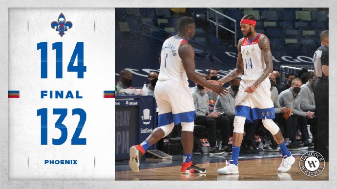 鹈鹕:锡安23分5板4助 英格拉姆25分3助 鲍尔21分12助3断2帽 布莱德索12分 埃尔南戈麦斯9分13板 雷迪克7分板助 哈特8分9板3助