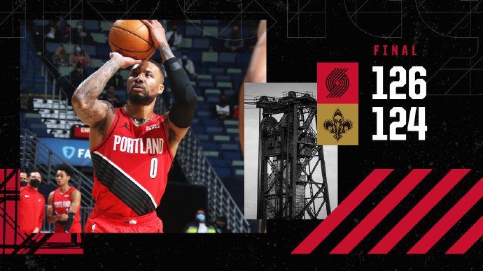开拓者(18-10):利拉德43分4篮板16助攻,特伦特23分2篮板,坎特11分4篮板,安东尼12分3篮板,琼斯13分7篮板3助攻,考文顿12分8篮板4封盖,胡德5分。