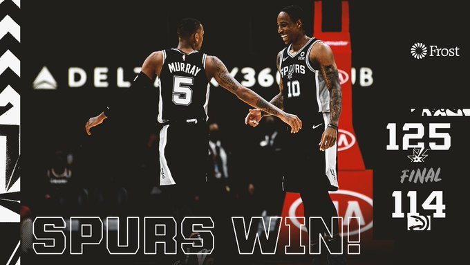 直播车2月13日讯 开启七连客牛仔之旅的马刺第一站来到了亚特兰大挑战老鹰。阿尔德里奇的继续缺阵,让本就捉襟见肘的马刺内线轮转雪上加霜,老鹰方面,隆多&博格达&亨特&邓恩的多人缺席则使球队后场实力大打折扣。比赛开局马刺率先进入比赛状态,状态火热的德罗赞连续打中单节14分,率领马刺占据主动,特雷-杨也独得17分给予回应,次节马刺一波41-19的进攻高潮彻底奠定领先优势,半场轰下赛季新高的77分,而老鹰在进攻端的断电,也带着29分的落后进入中场休息。第三节开场约翰逊连得10分,分差被拉开到了39分,溃不成军的老鹰只能通过卡佩拉的篮下捡漏勉强得分,而巨大的分差也使本场比赛早早失去了悬念,最终马刺在牛仔之旅的第一场比赛中,以125-114大胜老鹰,避免连败。