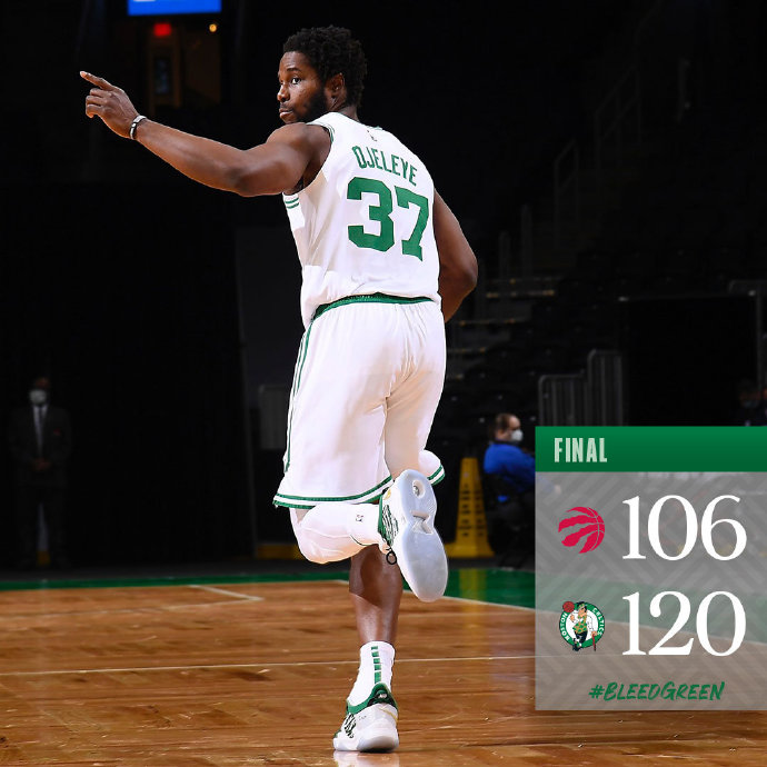 直播车2月12日讯 今日凯尔特人坐镇主场迎战猛龙。赛前,猛龙队两连胜12胜13负排名东部第五,凯尔特人12胜11负排名东部第四。凯尔特人近七战输掉了五场,本场比赛斯玛特与罗伯特-威廉姆斯缺阵。首节上来凯尔特人先声夺人获得十分领先优势,猛龙则稳扎稳打,步步迫近,无奈第一节末段塔图姆接连助攻队友命中三分,双方以五分分差结束首节。次节,凯尔特人三分线上手感火热,单节命中六记三分,领先十分结束上半场。下半场开始后,凯尔特人续上三分线外火力,猛龙三分线外也略有起色,在第三节后半段,双方陷入一段时间得分荒,最终凯尔特人领先八分进入末节。末节一上来,凯尔特人就凭借两记三分迅速将比分扩大至十分以上,猛龙则依靠突破内线始终紧咬比分,最后阶段沃克与塔图姆稳定发挥一波10比0带走比赛。最终凯尔特人以120-106击退猛龙,结束自己两连败的同时终结对手二连胜。