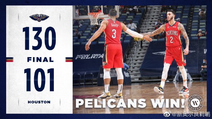 直播车2月10日讯 NBA常规赛火箭客场挑战鹈鹕,火箭近来遭遇2连败,鹈鹕状态反弹取得3连胜。开场后鹈鹕外线率先开张,不过火箭迅速追上比分,依靠锡安的发力鹈鹕稍稍领先。第二节虽然锡安依旧状态火热,但他收到犯规过多的困扰只得长时间在场下休息,在第二节后半段英格拉姆和哈特联手打出一波高潮帮助鹈鹕拉开比分,上半场鹈鹕63-50领先。下半场回来鹈鹕三分手感仍旧不错一度将分差拉大到20分,但火箭马上掀起反扑将比分追到10分左右。但第四节鹈鹕在外线依旧手感火热,最终鹈鹕130-101轻松战胜火箭取得4连胜,火箭遭遇3连败。