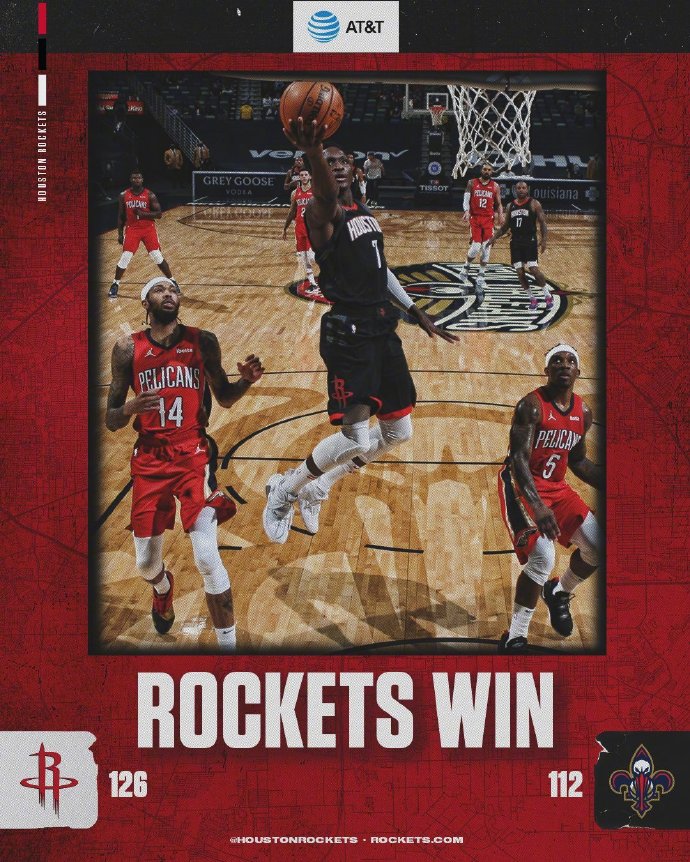 直播车1月31日讯 NBA常规赛,鹈鹕今日迎战火箭,前者两连胜后排在西部倒数第二位,而后者更是一波四连胜后来到西部第十的位置。比赛上来鹈鹕就率先进入状态取得领先,分差也是逐渐达到两位数,但进入次节火箭在进攻端突然爆发,单节爆砍48分实现反超并建立起18分的优势结束半场。易边再战,火箭始终掌握着场上的主动权,分差也是被继续扩大到二十分以上,比赛早早失去悬念,最终火箭大胜鹈鹕,迎来五连胜。