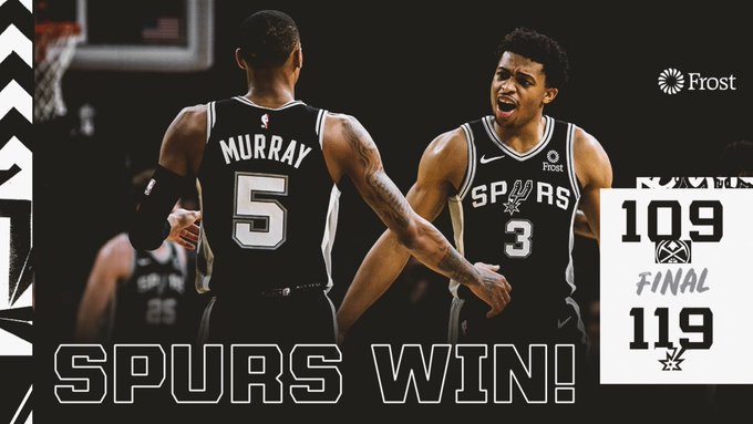 马刺(11-8):德罗赞30分10助攻,德章泰-穆雷26分7篮板3助攻,凯尔登-约翰逊19分9篮板3助攻,米尔斯17分3抢断,阿尔德里奇5分3篮板3助攻,沃克3分5篮板3助攻,珀尔特尔4分6篮板,瓦塞尔9分2篮板,盖伊6分6篮板5助攻