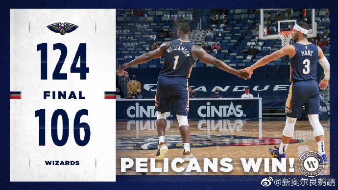 直播车1月28日讯 NBA常规赛奇才客场挑战鹈鹕,两队最近状态都表现不好,鹈鹕遭遇3连败,奇才2连败后已经在东部垫底,本场比赛威少缺阵。开场后鹈鹕抢得先机,随后奇才进攻断电,锡安内线连续拿分帮助鹈鹕在第一节建立17分领先。第二节回来小洛佩兹上来内线不断拿分,锡安也在内线强势回应,接着鹈鹕外线连中三分将分差拉大到20分,此后比尔再次站出来为奇才追分,上半场鹈鹕64-45领先。下半场回来两队大打对攻战,比尔第三节单节砍下24分帮助奇才略微缩小分差,但鹈鹕发挥稳定没有让奇才追上比分,最终鹈鹕124-106击败奇才结束3连败。