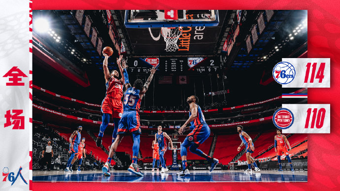 直播车1月24日讯 活塞坐镇主场迎战76人,两队都是背靠背作战,此役格里芬和罗斯休战。上半场活塞外线手感火热,格兰特、艾灵顿和米哈伊柳克等连中三分,帮助活塞一度取得两位数领先。但是恩比德在次节后半段站出来连续砍分,率领76人打出高潮追上比分,在半场结束以61-63紧咬比分。易边再战,恩比德延续手感,率队在第三节再次打出高潮完成比分反超。末节活塞反扑失败,最终76人以114-110力克活塞,取得3连胜,同时送给活塞4连败。