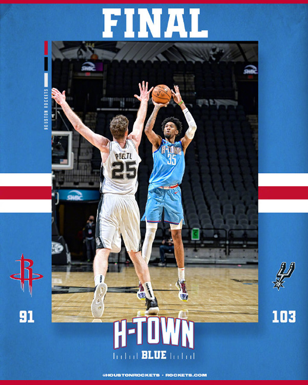 火箭(4-7):梅森-琼斯24分6板4助、麦克勒莫21分3板2断、伍德24分18板3助3帽、恩瓦巴7分4助、泰特7分5板5助、塔克4分9板。