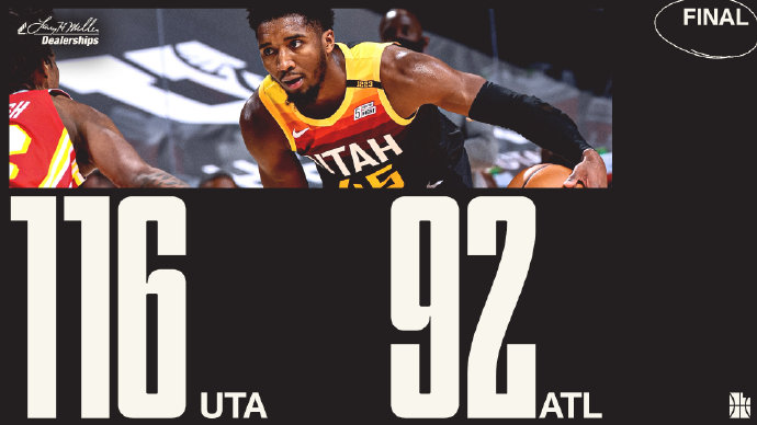 直播车1月16日讯 爵士坐镇主场迎战老鹰,此役爵士外线手感火热,康利、米切尔和博格达诺维奇连中三分,早早就帮助爵士建立起两位数领先。之后卡佩拉和科林斯轮番冲击内线为老鹰追分,但是米切尔在次节再度开火连续命中三分,率领爵士抵挡住老鹰的追分势头,以61-46保持两位数领先结束上半场。易边再战,爵士延续着手感,米切尔、博格丹诺维奇和克拉克森再轮番轰进三分,多点开花的爵士进一步扩大领先,比赛悬念提前失去。最终,爵士兵不血刃地以116-92击退老鹰,取得4连胜。