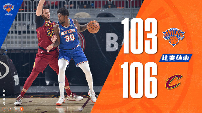 直播车1月16日讯 骑士坐镇主场迎战尼克斯,此役德拉蒙德状态火热,他在内线翻江倒海频频得手,帮助骑士在上半场稍稍取得领先。易边再战,骑士在第三节末突然哑火,尼克斯在兰德尔和巴雷特的带领下打出一波16-0的高潮反超比分。不过,骑士末节及时苏醒过来,德拉蒙德再次开火率队重夺领先,尼克斯则未能延续手感。最终,骑士以106-103获胜,止住3连败的颓势,同时送给尼克斯5连败。