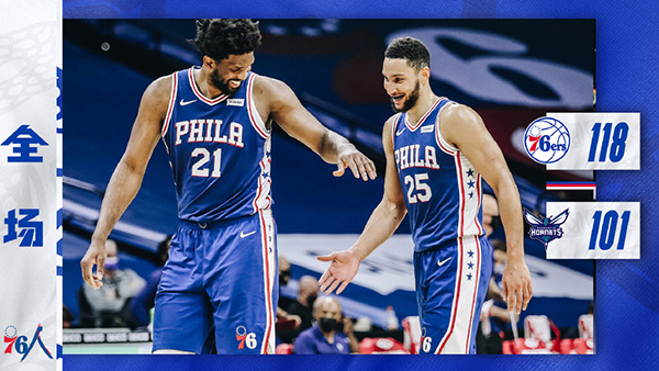 76人:西蒙斯、塞思-库里、哈里斯、格林、恩比德