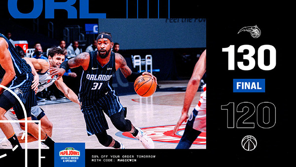 直播车12月27日讯 奇才今日坐镇主场迎来魔术的挑战,首节比赛两支球队交替得分一路僵持,第二节魔术在罗斯的带领下用一波10-2的攻势抢占上风,但顽强的奇才总能做出应对之策并将比分缩小至3分结束上半场。下半场威少在进攻端状态有所复苏,而奇才也一度在第三节实现比分反超,但魔术攻势更盛并在第四节逐渐占据上风,最后时刻的对决魔术连着4个回合全部转化成得分并守住优势奠定胜局。最终,奇才无力翻盘,魔术击败奇才迎来新赛季两连胜,奇才则遭遇2连败。