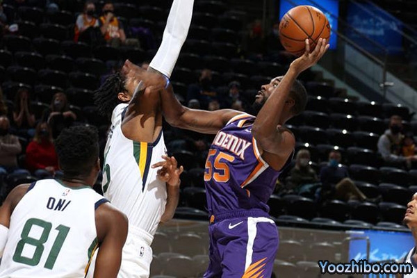 首节,布克连投带罚先下5分,米切尔毫不示弱回敬4分,戈贝尔两罚全中,米切尔再来一记三分,艾顿连进两球,博格达诺维奇空切打进,布克错位轻松拿分,两队打成11平。双方你来我往互不相让,比分连续打成平手。克拉克森、博格达诺维奇和奥尼轮番射中三分为爵士确立领先。布里奇斯急停跳投止血,克拉克森外线又是一记三分中的,佩恩突破打进,费沃斯顺下拿分,克拉克森三分弹无虚发,太阳冲击内线追回两球,首节打完,爵士33-26领先。