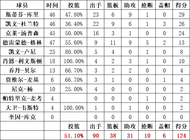 勇士队:斯蒂芬-库里、凯文-杜兰特、克莱-汤普森、德雷蒙德-格林、凯文-卢尼