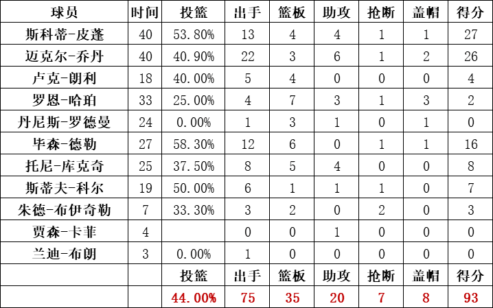 公牛队统计:
