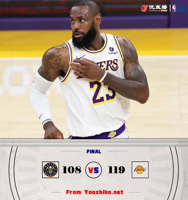 直播车 4月28日讯 NBA季后赛西部首轮G4,湖人今日继续迎战掘金,目前掘金已经取得大比分3-0的领先,湖人已经无路可退,此役伍德迎来复出但未上场。比赛上来,两队就开始展开拉锯,场上多次出现平分,不过在首节后半段湖人还是取得了领先,次节湖人的进攻表现依旧不错,里夫斯连拿七分将分差拉开到两位数,半场结束时掘金落后13分;下半场回来,掘金多次发起反扑势头,小波特单节轰下15分,好在是湖人都及时给出回应,他们带着本轮系列赛最大的11分优势进入末节,末节拉塞尔连续得分,湖人一直没有给对手逆转的机会,最终湖人119-108力克掘金,大比分追至1-3。