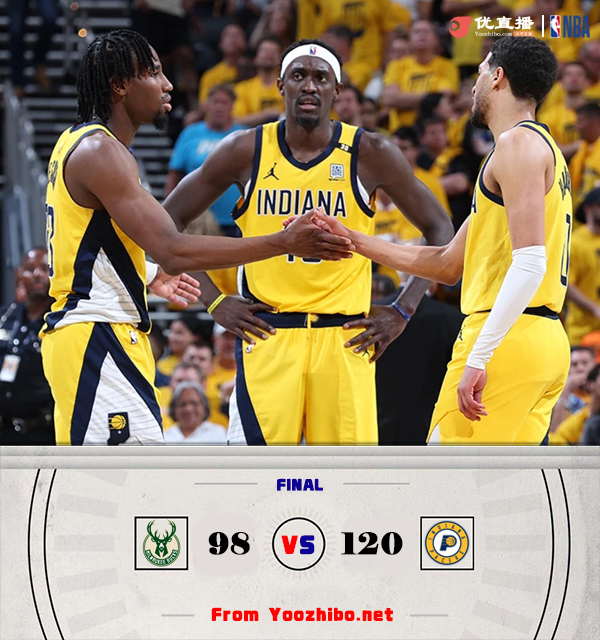 直播车讯 5月3日 NBA季后赛,步行者回到主场迎战雄鹿。目前大比分步行者3-2领先。本场字母哥继续缺阵,利拉德出战。比赛开始,雄鹿反客为主打出10-3的开局,步行者内外开花迅速扳平比分,此后雄鹿命中率下降,步行者一波13-2取得两位数领先,次节利拉德连投带罚拿分缩小分差,步行者持续发力保持优势,半场战罢步行者59-47领先雄鹿12分。易边再战,双方大打对攻,雄鹿多点开花迫近比分,麦康纳连得5分稳住局势,末节步行者内外开花将优势扩大到20分,雄鹿苦苦追赶无果。最终,步行者120-98击败雄鹿,总比分4-2淘汰对手晋级。