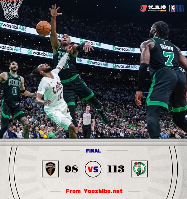 直播车5月16日讯 NBA季后赛东部半决赛G5,凯尔特人回到主场迎战骑士,由于在克利夫兰的两场比赛绿军全部拿下,目前凯尔特人3-1拿到赛点。本场比赛,米切尔和阿伦继续缺阵,勒韦尔也不打。比赛开始,双方接连从外线打开局面,怀特状态火热单节得分上双,而小莫里斯也成为替补奇兵,弹无虚发给出回应,比分一直拉不开,首节双方打成28平,次节双方再次在外线展开对飚,小莫里斯继续保持不错手感,霍福德、怀特和塔图姆接连4记三分帮助绿军反超比分,半场凯尔特人领先6分。下半场,霍福德联手塔图姆打出11-0进攻波一举建立双位数领先,小莫布里接连攻击内线连砍9分止血,塔图姆再站出来回应,第三节双方又近乎打平,末节小莫布里和小莫里斯一内一外继续追分,但怀特、霍福德和塔图姆各自扔进三分强势回应并再次拉开比分,随后绿军牢牢保持住10分左右领先,最终凯尔特人113-98力克骑士,总比分4-1晋级东决。