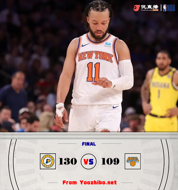 直播车5月20日讯 NBA季后赛东部半决赛G7,尼克斯回到主场迎来和步行者的生死战。本场阿努诺比和哈特均首发出战。比赛开始,双方开场势均力敌,比分交替领先,步行者外线开火连中三分打出16-4将分差拉开到两位数,次节更是持续输出,哈利伯顿和西亚卡姆联手带队一举获得20分以上优势,伯克斯挺身而出连投带罚单节拿到14分续命,半场战罢步行者70-55领先15分。易边再战,尼克斯奋力反击打出7-0将分差缩小到个位数,但此后却再度哑火,步行者多点开花轰出16-4攻击波稳住局势,阿努诺比确定退出比赛后布伦森遭遇左手骨折同样退赛,步行者轻松将分差拉开到20分,尼克斯连投带罚苦苦追赶,哈特犯满离场,步行者稳扎稳打将优势保持到最后。最终,步行者130-109击败尼克斯,总比分4-3挺进东决。