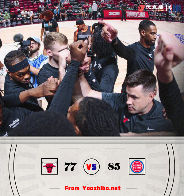 直播车讯 7月16日 NBA夏季联赛,活塞主场迎战公牛,公牛在选秀大会上主要摘得11号秀布泽利斯,而活塞则是选中5号秀霍兰、37号秀克林特曼。比赛开始,公牛上来打出8-2不错开局,霍兰扣篮加三分止血,但布泽利斯接连暴扣帮助公牛很快领先到双位数,双方对攻首节公牛领先14分,次节活塞6-0紧急追分,但公牛里突外投迅速回应7-0,萨瑟接连冲击内线加上三分继续追至个位数分差,半场活塞只落后6分。下半场,萨瑟上来连进2记三分一度帮助活塞追平比分,公牛4名球员各自扔进三分迅速止血并重新拉开双位数领先,好在活塞马上小高潮回应,麦考伊压哨三分重新追到差2分,末节活塞上来又是打出9-0直接反超比分,打了3分多钟菲利普斯上篮2+1终于止颓,但霍兰接连反击还是帮助活塞重新领先9分,最终活塞85-77逆转公牛。