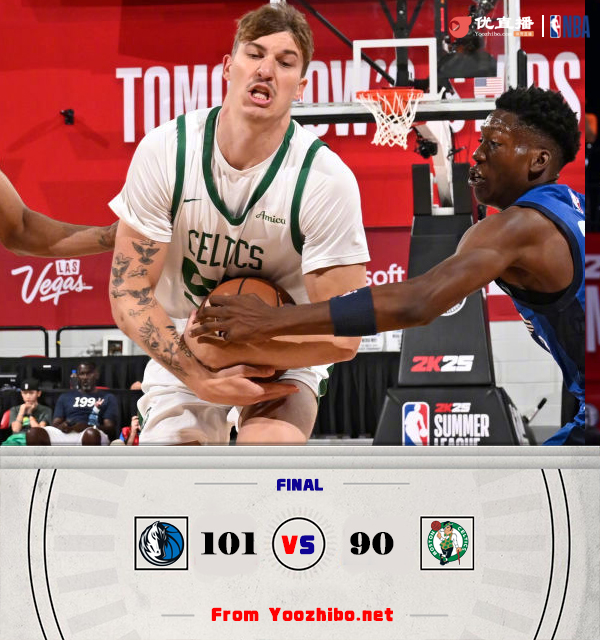 直播车 7月20日讯 NBA夏季联赛,独行侠对阵凯尔特人。比赛开始,独行侠率先发力,多点开花打出12-2的攻击波很快取得两位数领先,凯尔特人里突外投努力追赶,次节双方围绕10分分差展开拉锯战,独行侠连投带罚保持优势,凯尔特人连中三分顽强咬住,半场战罢独行侠55-45领先凯尔特人。易边再战,凯尔特人连投带罚拿分,独行侠连中三分保持10分左右优势,末节独行侠稳扎稳打,凯尔特人苦苦追赶无果。最终,独行侠101-90击败凯尔特人。
