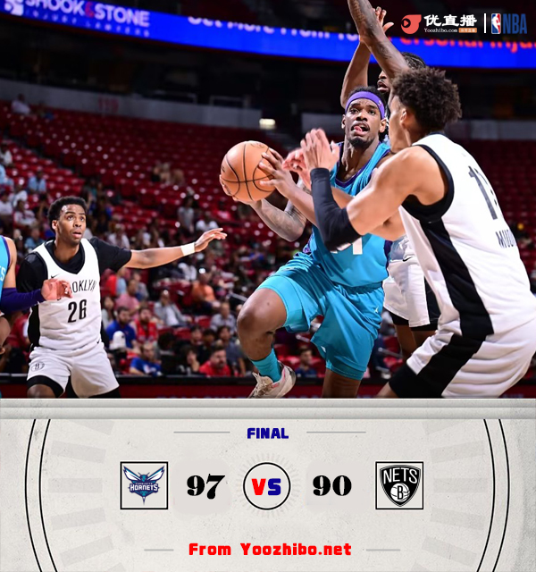 直播车 7月22日讯 NBA夏季联赛排位赛,黄蜂对阵篮网。比赛开始,黄蜂外线连续发炮打出8-2开局,但篮网马上回应7-0小高潮,双方命中率一般,克洛尼和泰瑞斯-马丁接连三分命中助篮网首节反超2分,次节打了2分多钟黄蜂才打破僵局,双方继续展开拉锯战,斯莱特接连三分半场怒轰21分帮助黄蜂重新取得2分领先。下半场,斯莱特继续火热手感,带领黄蜂一波15-2超级进攻波重新拉开双位数领先,但篮网外线多点开花接连5记三分再次咬住比分,三节黄蜂领先6分,末节篮网接连攻击内线一度又反超1分,但黄蜂接连外线一波11-0重新掌握双位数领先,最终黄蜂97-90力克篮网。