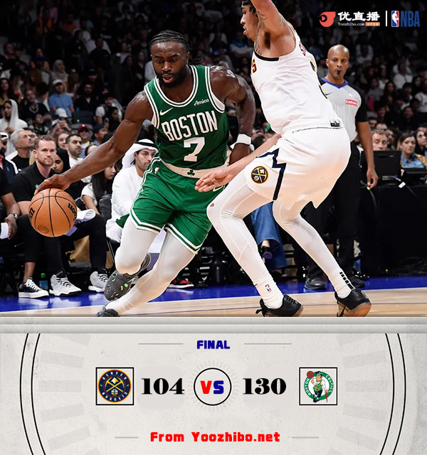 直播车NBA季前赛阿联酋站,凯尔特人和掘金迎来二番战,首场比赛双方主力只出战半场的情况下,凯尔特人逆转取胜;本场比赛威少、戈登、小波特不打。比赛开始,怀特里突外投打得很主动,而穆雷状态不错带领掘金给出回应,随后塔图姆接连中远投取分,约基奇内线也是挡不住,首节凯尔特人领先5分,次节双方换上全替补,凯尔特人很快犯满,但依靠不错的三分守住领先优势,随后双探花与约基奇展开对轰,半场绿军继续领先7分。下半场,掘金换上全替补且进攻端断电,而双探花继续首发,绿军外线多点开花打出34-8超级攻击波直接领先到30分以上,末节双方继续深度轮换,凯尔特人众将始终保持住30分左右领先,最终凯尔特人130-104再胜掘金。