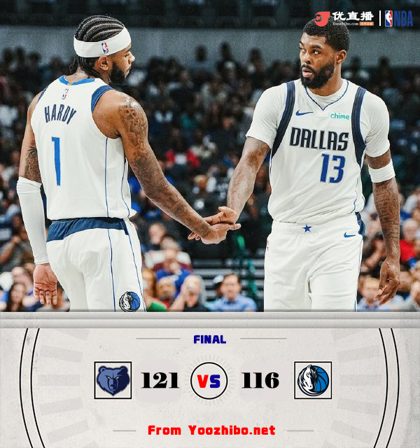 直播车讯 10月8日讯 NBA季前赛,独行侠主场迎战灰熊,本场比赛欧文、克莱和东契奇缺阵。比赛开始,莫兰特上来就先为灰熊拿到首分,但独行侠依靠三分回应,随后回应一波9-0建立主动权,但戈特曼接连3记三分,独行侠一波11-0追到差3分,次节莫兰特助飞埃迪空接暴扣,双方展开拉锯战,莫兰特突发崴脚下场,莱夫利内线弹无虚发,双方展开对攻战,半场双方打成60平。下半场,莫兰特无碍继续打并连取7分,随后阿尔达马和克拉克撑起灰熊进攻,哈迪也能为独行侠回应,三节灰熊领先3分,末节双方继续深度轮换,你来我往比分交替领先,随后河村勇辉上来有攻有传帮助灰熊掌握微弱领先,韦尔斯三分杀死比赛,最终灰熊121-116险胜独行侠。
