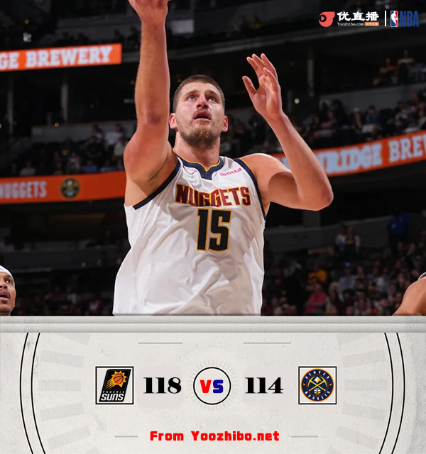 直播车10月14日讯 NBA季前赛,太阳对阵掘金,本场比赛太阳三巨头均缺战。开场后太阳外线手感火热连中三分取得领先,掘金逐渐找到手感也在外线给出回应,约基奇篮下也接连打进,掘金完成反超。第二节太阳依旧主要靠外线追赶比分,掘金则是在约基奇带领下打得有条不紊,小波特也是连续投篮命中,半场过后掘金手握9分优势。易边再战,两队大打对攻战,掘金依旧围绕约基奇开展进攻,太阳外线手感火热用三分雨缩小分差,第四节掘金主要也用替补出战,太阳延续攻势反超比分,最终太阳118-114逆转掘金。