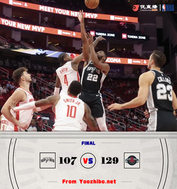 直播车10月18日讯 NBA季前赛,火箭主场迎战马刺,本场比赛文班亚马和保罗缺阵。比赛开始,双方都迅速进入状态并展开拉锯战,布兰纳姆状态不错,卡斯尔上来也很活跃;阿门接连送暴扣,火箭多点开花,首节双方打成31平,次节申京联手小史密斯接连攻击内线帮助火箭建立主动权,随后火箭接连外线发炮一波19-0超级攻击波拉开20分以上领先。下半场,巴恩斯里突外投连砍8分带领马刺缩小分差,但杰伦-格林外线手感火热,带领火箭接连三分回应重新拉开20分以上领先,末节申京接连内线强打2+1助队保持20分以上领先,随后双方深度轮换练兵,最终火箭129-107轻取马刺。