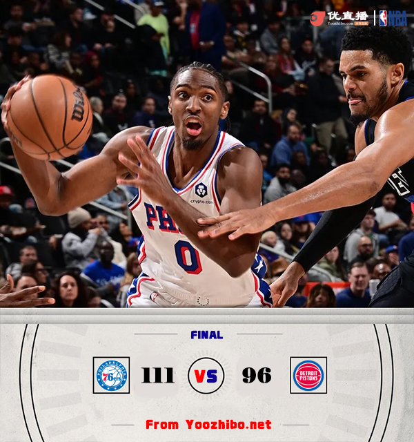 直播车讯北京时间12月1日讯 NBA常规赛,活塞主场76人,活塞目前9胜12负排名东部第10位,76人则是2连败后3胜14负,排在东部第14位。本场比赛,乔治复出,恩比德继续缺阵。比赛开始,乔治接连助攻队友得分,但庄神抢篮板崴脚受伤,随后76人连续3记三分一波11-0直接建立主动权,76人替补也发力,首节便领先17分,次节76人进攻端有些停滞,艾维有攻有传带队追分,随后比斯利接连3记三分命中,活塞顺势追至个位数分差,半场活塞仅落后5分。下半场,马克西突然发力,里突外投连砍12分,同时还能串联,76人迅速拉开20分以上领先,活塞进攻端迟迟找不到状态,末节活塞基本上换上替补练兵,马克西带领76人牢牢保持住20分左右领先,最终76人111-96轻取活塞。