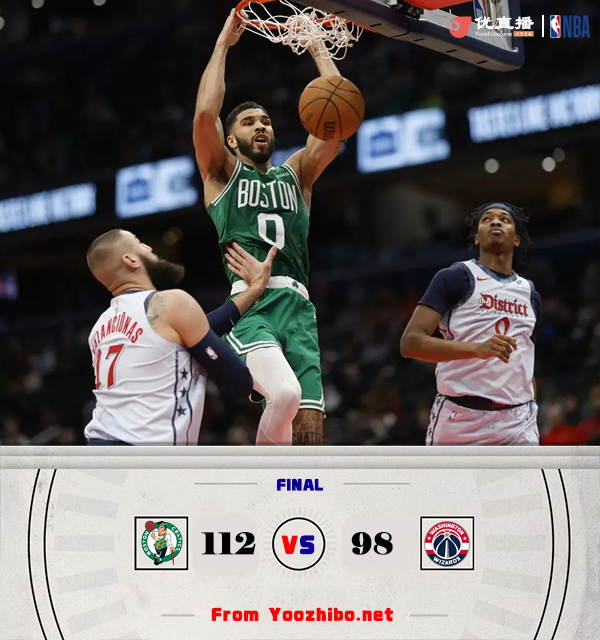 直播车讯北京时间12月16日讯 NBA常规赛,凯尔特人客场挑战奇才。凯尔特人20胜5负高居东部第二,奇才3胜20负联盟垫底。上半场,两队开场势均力敌,比分交替领先,凯尔特人一波10-0确立优势,次节奇才仍无起色,普理查德连中三分带队将分差拉开到20分以上,奇才加强防守利用反击苦苦支撑,半场战罢凯尔特人67-52领先奇才。下半场,库利巴利连续拿分带队迫近比分,凯尔特人三分3连击强势回应,末节凯尔特人稳扎稳打保持优势,奇才苦苦追赶无果。最终,凯尔特人112-98轻取奇才,客场过关。