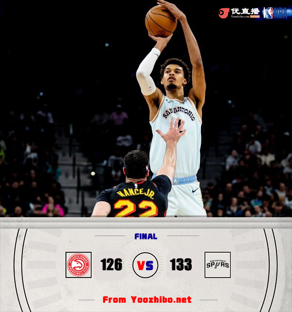 直播车讯 北京时间12月20日讯 NBA常规赛,老鹰对阵马刺,两支球队上场比赛都是遭遇失利。开场后两队就打得十分胶着,马刺连中三分建立领先,文班亚马还投进一记3+1。老鹰轮换阵容在约翰逊和亨特的带领下掀起反补将比分反超,不过主力阵容重新登场后马刺回敬一波9-0稳住阵脚,随后两队陷入拉锯战。特雷-杨多次为队友送出助攻,亨特表现出色频频拿分,第二节尾声老鹰一度掀起攻势取得11分领先。下半场回来马刺先声夺人将比分追上,两队你来我往互不相让,亨特暴力隔扣文班扳平比分,杨绝杀不中两队进入加时。加时赛中文班亚马独得8分帮助