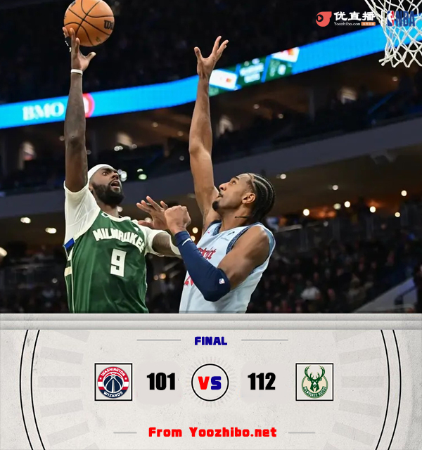 直播车讯 北京时间12月22日讯 NBA常规赛,奇才对阵雄鹿,奇才上场比赛击败黄蜂,雄鹿上场输给骑士,本场比赛字母哥和利拉德双双缺阵。开场后两队就打得十分胶着,雄鹿多点开花取得领先,普尔外线连中三分帮奇才紧咬比分,首节两队打成36平。第二节上来奇才进攻效率明显下降,米德尔顿和波蒂斯联手带领雄鹿将分差拉大到两位数。下半场回来雄鹿率先发力一度将分差拉大到22分,但随后奇才一波三分雨稍稍追回一些分数,不过雄鹿及时稳住局面始终将分差保持在两位数,没有给奇才机会,最终雄鹿112-101轻松击败奇才。