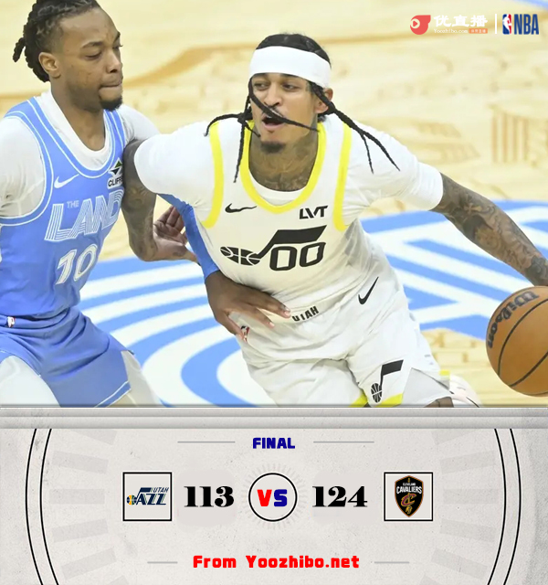 直播车讯12月24日讯 NBA常规赛继续进行,联盟领头羊骑士主场迎战爵士,骑士迎来4连胜,目前25胜4负稳居全联盟第一,爵士近期状态不错迎来连胜,但目前仅7胜20负位列西部倒数第二。赛前骑士主场篮筐出现问题开球时间延后,比赛恢复后双方互相试探,莫布里和加兰内外结合联手取分,马尔卡宁外线试投及时回应,首节结束时骑士领先2分,次节回来,双方延续火力继续僵持,爵士多点开花一度反超,加兰飚中压哨三分稳住局势,半场战罢,骑士依然领先4分。易边再战后双方拉开架势大打对攻,马尔卡宁和克拉克森连中三分,米切尔找到感觉外线回应,梅里尔手感滚烫单节贡献14分,三节结束后骑士确立11分优势,末节上来,爵士延续追分势头,双方分差一度只剩1分,骑士回敬15-5攻击波终结悬念,最终骑士124-113力克对手迎来5连胜。