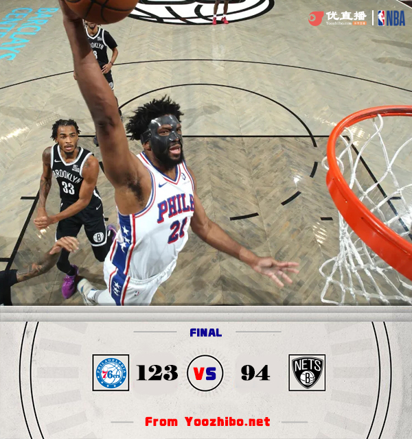 直播车1月5日讯 NBA常规赛,篮网主场迎战76人,篮网目前13胜21负排在东部第12位,76人则是13胜19负排名东部第11。比赛开始,篮网上来3记三分轰出11-0开局,但凯莱布-马丁里突外投止血,76人迅速回应13-2攻击波追平比分,随后恩比德里突外投取分帮助76人领先双位数,次节泰瑞斯-马丁中投终于帮助篮网破荒,双方展开拉锯战,凯莱布-马丁接连取分半场弹无虚发助队半场领先17分。下半场,拉塞尔因伤不会回归,恩比德联手马克西带队打出12-2攻击波一举拉开20分以上领先,随后76人接连外线发炮一度拉开30分以上领先,末节双方逐渐换上替补练兵,76人牢牢掌握20分以上领先,最终76人123-94轻取篮网。