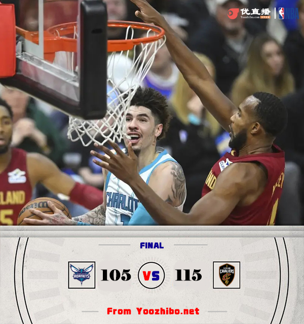 直播车1月6日讯 NBA常规赛,黄蜂对阵骑士,黄蜂最近状态低迷遭遇9连败,本场比赛鲍尔和米勒复出,骑士则是气势汹汹豪取9连胜。开场后骑士内外开花早早建立领先,黄蜂在鲍尔和米勒的发挥下紧准不舍,骑士两度打出攻势都被黄蜂及时回应。第二节上来小莫布里内线强势发挥,加上韦德外线连中三分,骑士一波13-2的高潮将比分拉开,此后黄蜂逐渐找回手感,两队再度陷入拉锯战,半场过后骑士领先15分。易边再战,米勒上来连追两记三分,米切尔站出来接连砍分还以颜色。第四节米切尔延续状态带队将分差拉大到20分以上,比赛失去悬念,最终骑士115-105轻松击败黄蜂豪取10连胜,黄蜂遭遇10连败。
