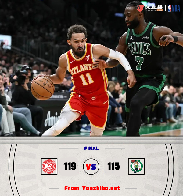 直播车讯 北京时间1月19日讯 NBA今日继续开打,凯尔特人今日坐镇主场迎战老鹰。首节之争绿军早早进入状态,杰伦-布朗连砍9分帮助球队拿到19-9的完美开局,老鹰开局打得被动也直接导致随后一直被动追分;不过进入第二节双方剧本反转,首节打得被动的老鹰在开局轮换阶段送上15-6的攻势迅速追上比分,博格丹期间命中三分也将自己连续命中三分球场次扩大至111场;绿军方面则落入被动次节仅得15分并丢掉领先带着4分劣势进入下半场。休息归来老鹰状态如同过山车一般又开始回落,绿军则在落后9分的被动局面下送出18-4的攻势扭转局势;末节决胜时刻绿军虽然手握领先但优势不大埋下隐患,最后时刻塔图姆还投丢了关键罚球,特雷-杨则在随后两罚全中将比赛拖入加时。加时赛双方交替拿分几次互换领先,末段双方更是弹无虚发各种神仙球,不过最后时刻布朗先是被帽,随后又出现失误,老鹰则依靠奥孔武最后的进攻篮板罚球奠定胜局。最终,老鹰加时力克凯尔特人拿下比赛。
