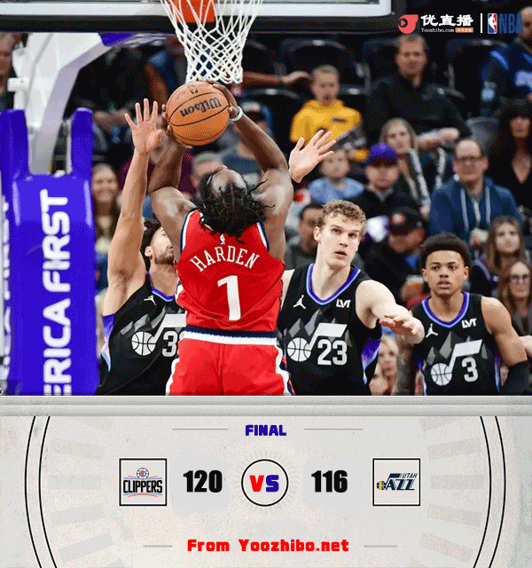 直播车讯2月14日 NBA常规赛继续开打,爵士今日坐镇主场迎战快船,本场比赛因为背靠背的原因,快船核心之一的莱昂纳德轮休缺阵,新援本-西蒙斯则迎来快船生涯首秀。首节之争快船开局表现尚可但进入轮换阶段突然陷入被动,爵士短短4分钟里命中5记三分并送上17-8的攻势抢占主动权,期间本西接哈登秒传空接扣篮拿下快船生涯第一分;次节开局快船依旧被动,爵士则再送14-2的攻势直接拉开19分的优势。快船在前4分40秒里仅得2分的情况下及时回暖,哈登连续制造犯规拿下7分,鲍威尔协助抢分帮助球队追至6分进入下半场。休息归来快船进攻端只能依赖哈登和鲍威尔,而爵士也是抓住机会很快拉开两位数领先。不过末节快船总算不再慢热开局14-4的攻势直接扭转局势,这之后双方一路僵持,快船错失拉开比分的机会,爵士则依靠科利尔的罚球拖入加时。加时赛鲍威尔状态火热连续拿分为快船抢占先机,他一人拿下9分,包括最后连续上篮得手为球队取得5分领先奠定胜局。最终,快船加时力克爵士拿下比赛。