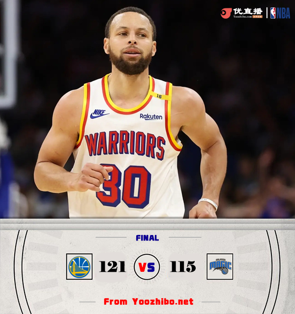 直播车讯北京时间2月28日NBA常规赛,奥兰多魔术主场对阵金州勇士。上半场魔术进攻火力强势,勇士库里半场21分仍落后两位数,半场魔术66-52勇士,第三节库里爆发单节22分带队轰出40-21反超5分,末节勇士一度领先至13分,魔术强势反扑追至2分分差,关键时刻库里站出来收下比赛,最终勇士121-115魔术。