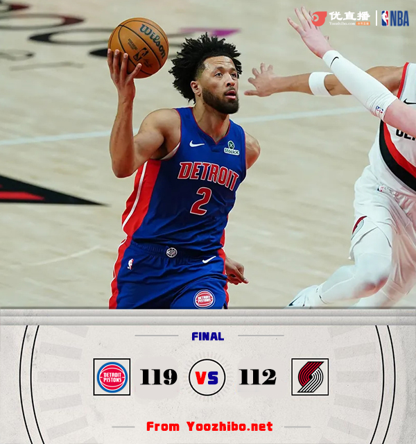 直播车讯北京时间3月10日讯 NBA常规赛火热进行,两连败的开拓者主场迎战活塞,活塞近期同样遭遇连败,35胜29负暂列东部第6位,开拓者28胜36负排在西部第12位。首节开打后活塞反客为主率先占优,康宁汉姆连投带罚不断取分,小哈达威外线续上火力,格兰特手感滚烫及时回应,首节结束时活塞领先3分,次节回来,两队比分继续紧咬,但中段活塞再度发力,半场战罢,活塞继续领先6分。易边再战后开拓者进攻陷入停滞,活塞稳扎稳打牢牢占优,三节结束后活塞保持11分优势,末节上来,西蒙斯率队迫近比分,但决胜时刻开拓者连续错失扳平三分,康宁汉姆连中终结悬念,最终活塞119-112力克对手终结连败,同时送给开拓者三连败。