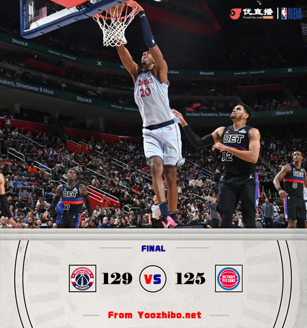 直播车讯北京时间3月14日讯 NBA常规赛,奇才对阵活塞,奇才2连败继续在东部垫底,活塞则是拿到2连胜继续占据东部第六。开场后康宁汉姆和哈里斯联手帮助活塞以11-3开局,米德尔顿状态不错接连砍分帮助奇才追上比分,随后奇才连中三分完成反超,活塞也在外线及时回应,首节两队打成平手。第二节依旧是活塞率先发力,奇才后来居上完成反超,康宁汉姆重新登场后为活塞止血,两队再度陷入拉锯战。易边再战,奇才上来外线一阵三分雨将分差拉大到两位数,康宁汉姆再次站出来带领活塞打出攻势,活塞以一波11-0的攻击波反超比分结束第三节。最后一节奇才多点开花再度打出气势,两队陷入僵持,康宁汉姆连续拿分,乔治则两记三分回应,萨尔顺下完成暴扣,此后活塞进攻未果,奇才罚球巩固优势,最终奇才力克活塞。