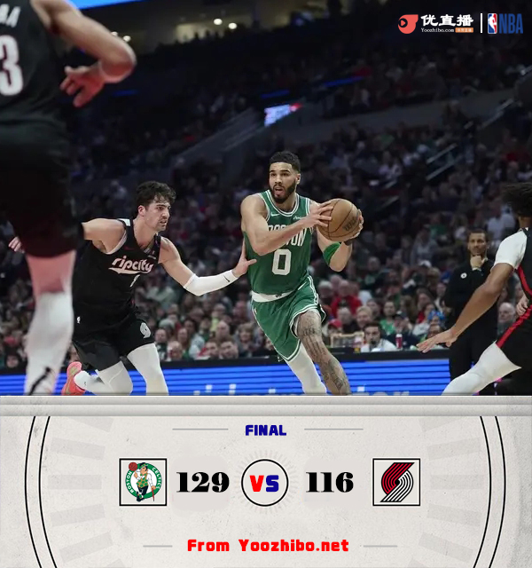 直播车讯北京时间3月24日讯 NBA常规赛,开拓者主场迎战凯尔特人。两队都是4连胜,开拓者32胜39负西部第12,凯尔特人51胜19负东部第2。本场比赛,杰伦-布朗继续缺阵,霍勒迪和波尔津吉斯也不打。比赛开始,普理查德上来连续被吹犯规很快3犯下场,双方外线连续对飙,凯尔特人更胜一筹,塔图姆接连送助攻带队首节领先10分,次节开拓者发力连续反击一波12-0直接追平比分,霍福德接连中远投止血,绿军回应9-0稳住领先优势,随后凯尔特人外线继续发炮半场领先13分。第三节,塔图姆开始发力,里突外投单节轰下18分,凯尔特人一度拉开近20分领先,但顽强的开拓者还是追到差12分,末节双方继续对攻战,外线你来我往,但凯尔特人始终保持十几分领先,最终凯尔特人129-116力克开拓者,拿到5连胜同时终结对手4连胜。